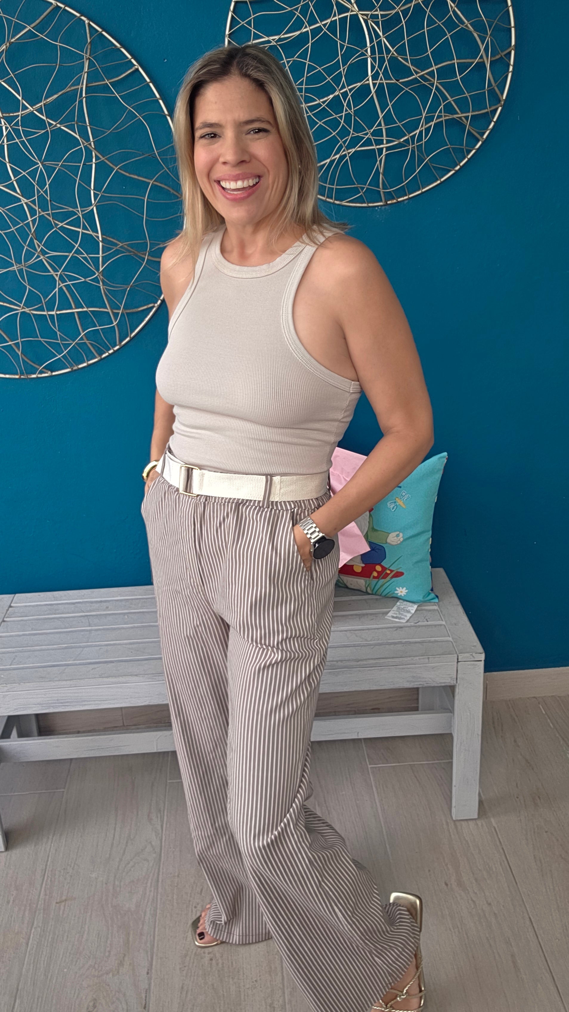 Discover the Joannix Pants, expertly crafted in Italy to bring you premium quality and style. These striped trousers, designed to fit up to size large, offer a perfect blend of comfort and elegance. With the included belt, you can customize your fit and effortlessly elevate your look. Make a statement with these versatile pants that combine sophistication with a flattering fit.