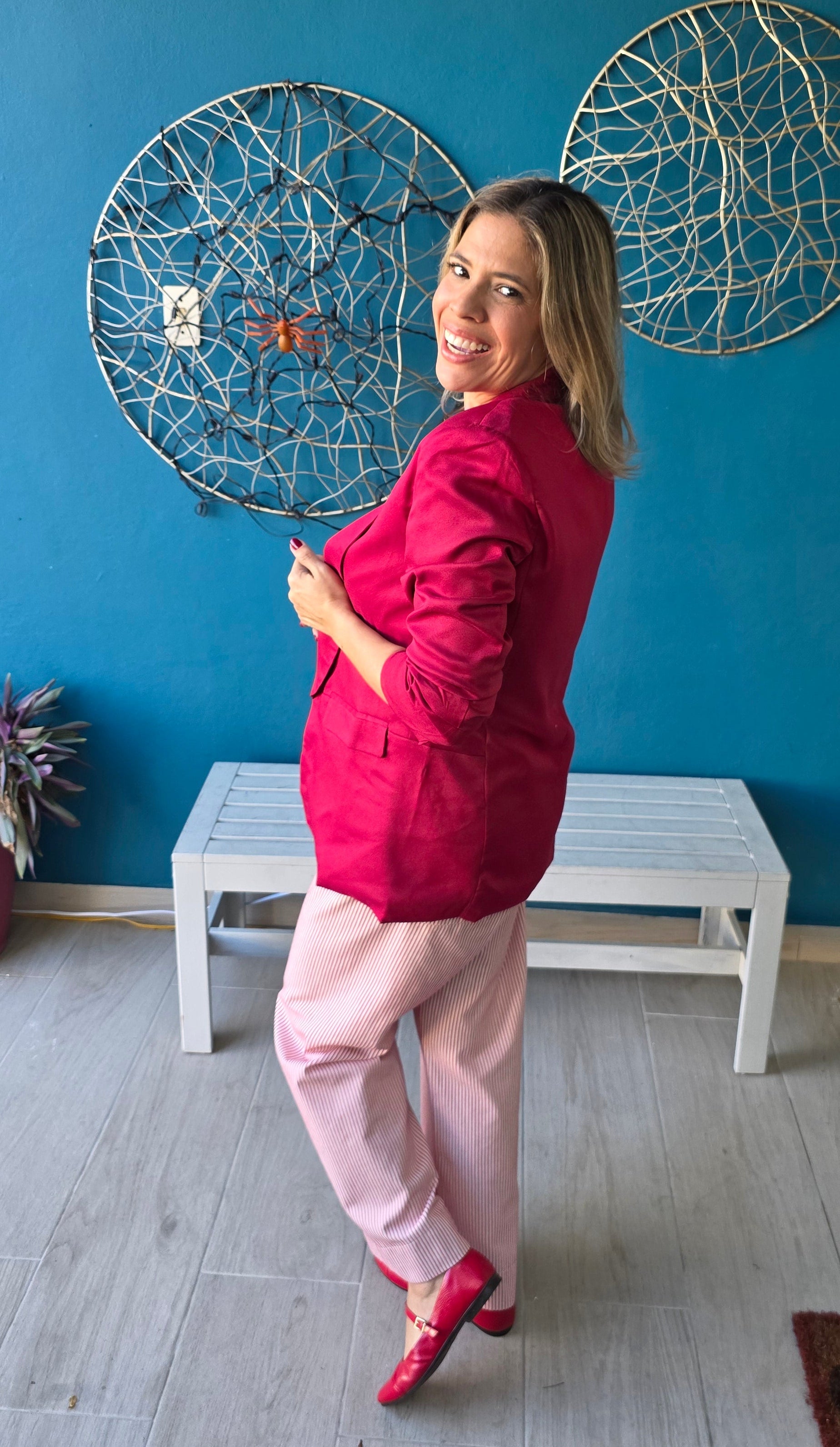 Make a striking statement with the Kenia Blazer in deep burgundy. This solid woven piece offers a sharp collar and stylish 3/4 length ruched sleeves that add a unique edge to your outfit. Perfect for boosting confidence and turning heads, it’s a versatile choice that elevates any wardrobe instantly. Step out with power and elegance every time you wear it.