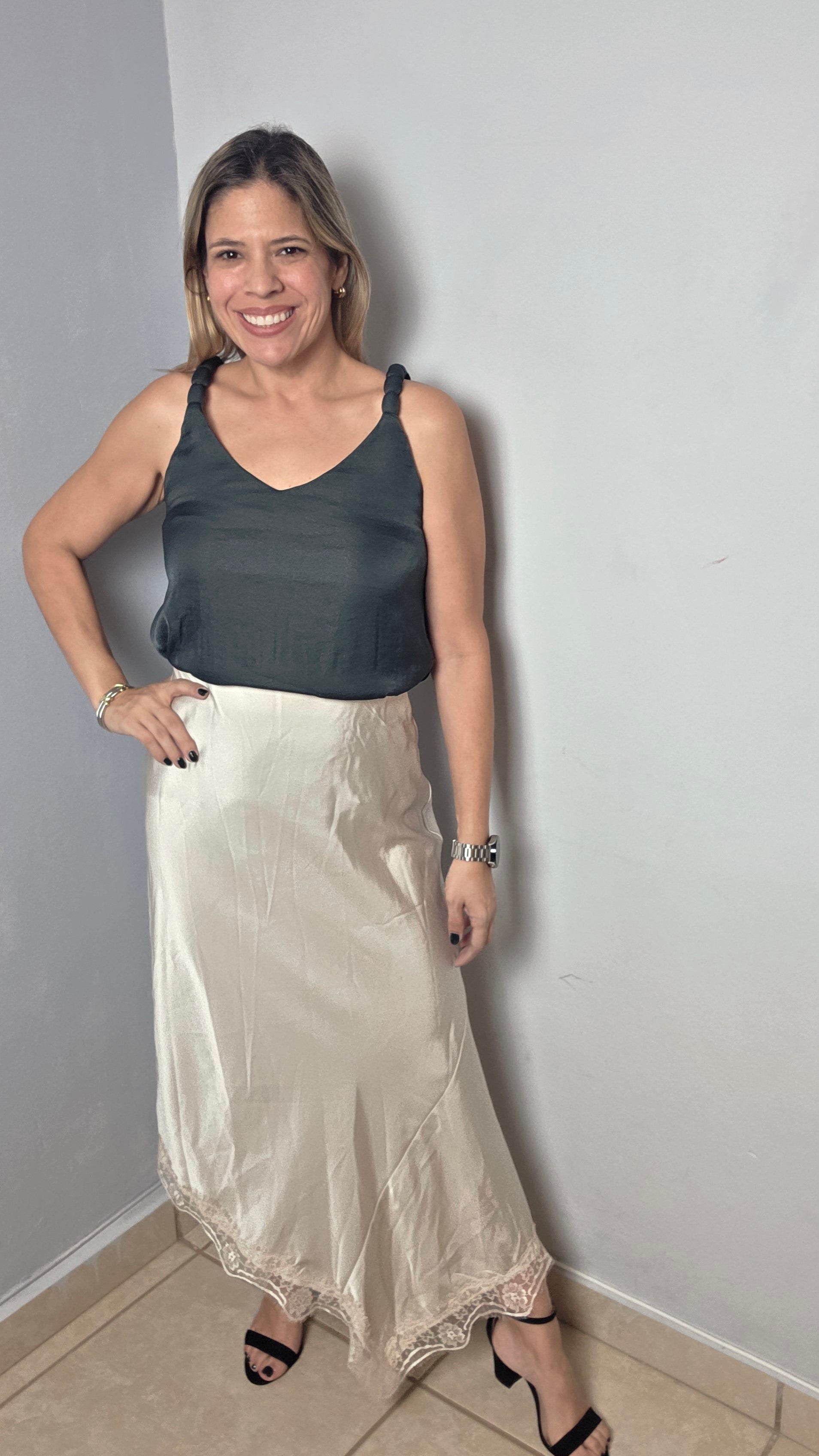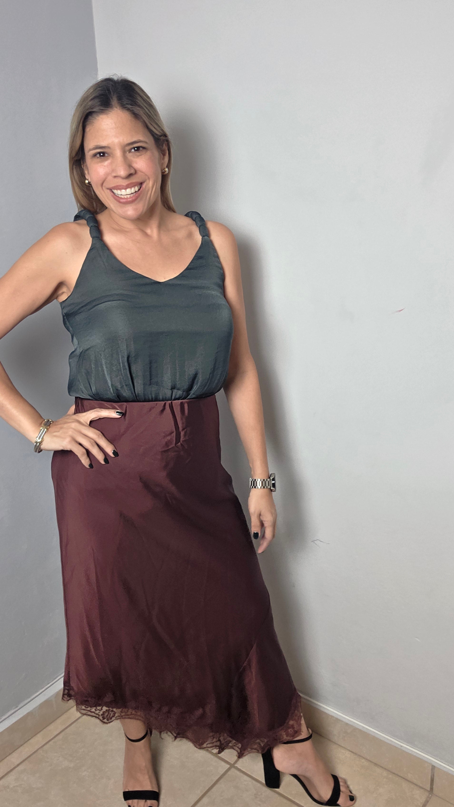 Experience luxury and comfort in our Italian-made Asymmetrical Satin Lace Skirt. Its elastic waistband ensures a perfect fit for sizes up to large. The elegant design and high-quality fabric will elevate your style and make you feel confident and beautiful.
