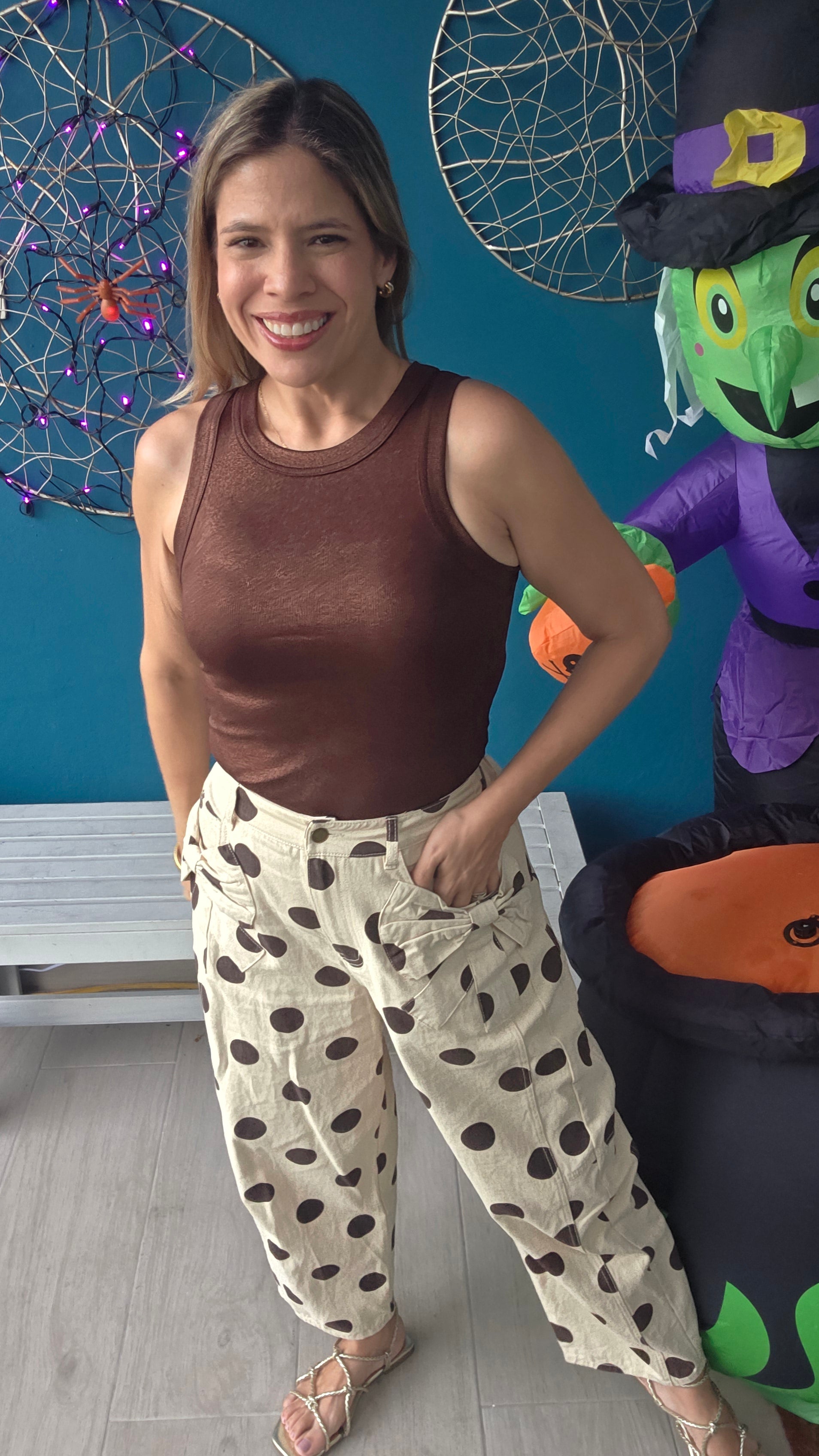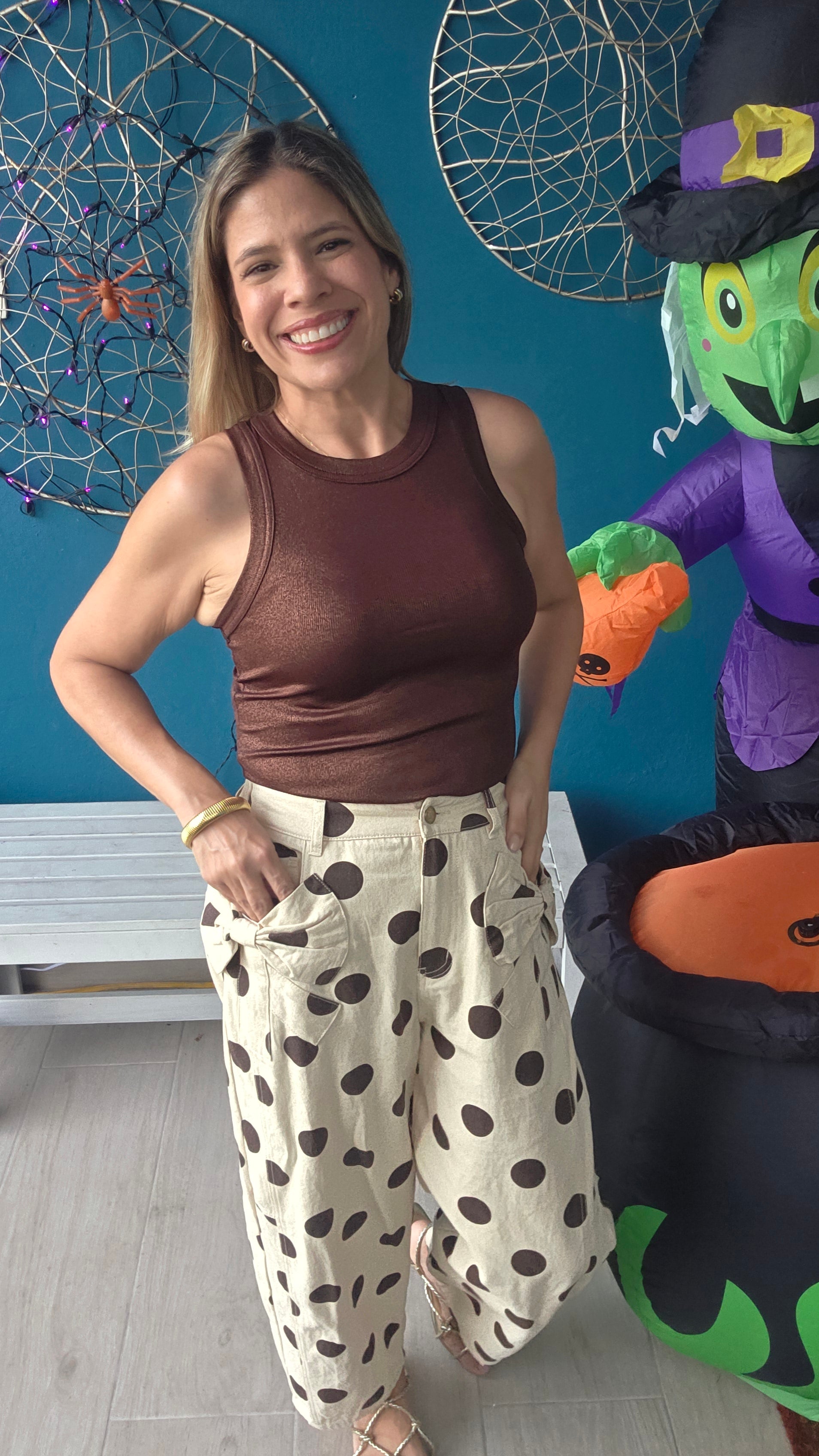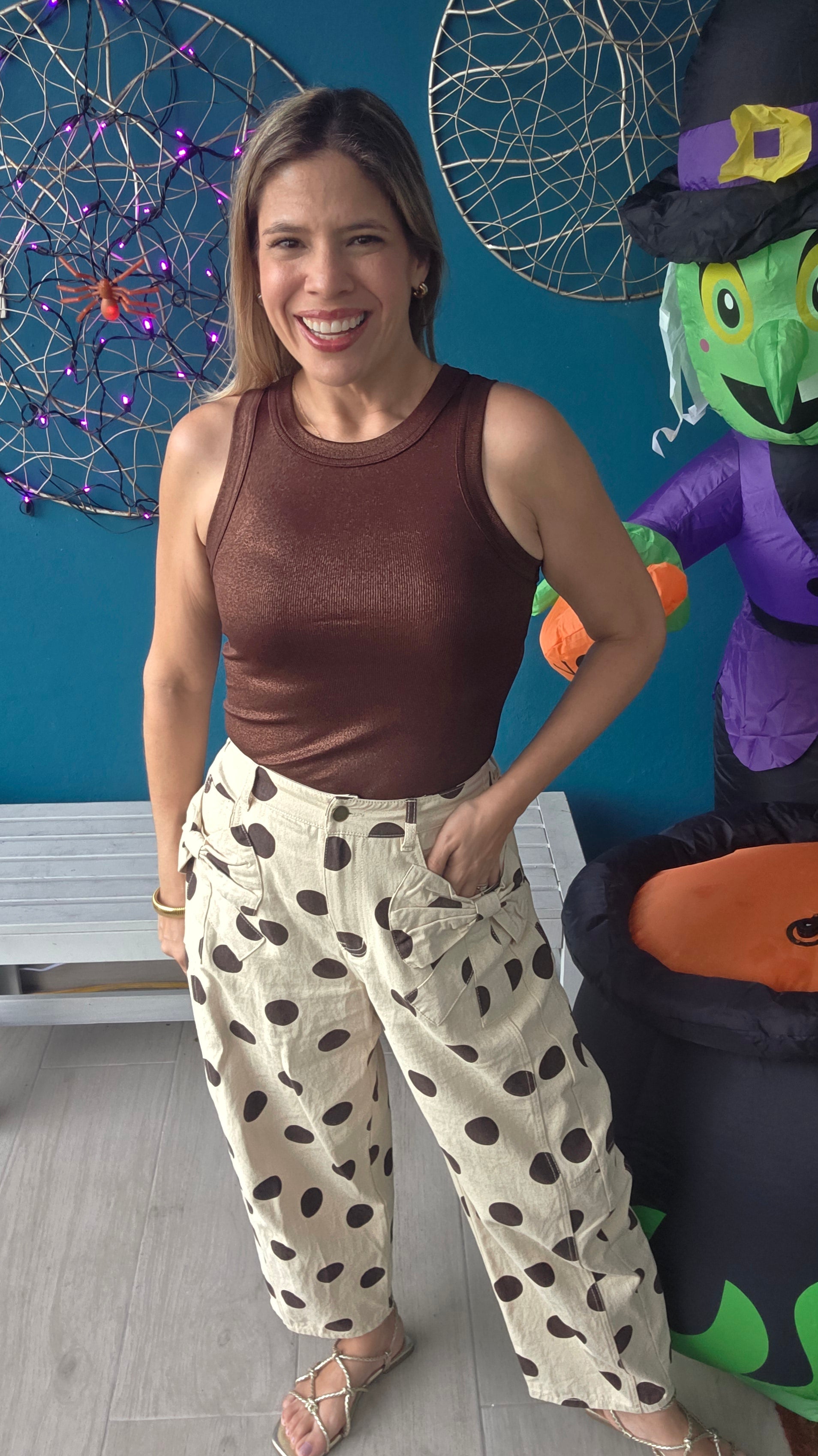- Patricia is wearing size Small.