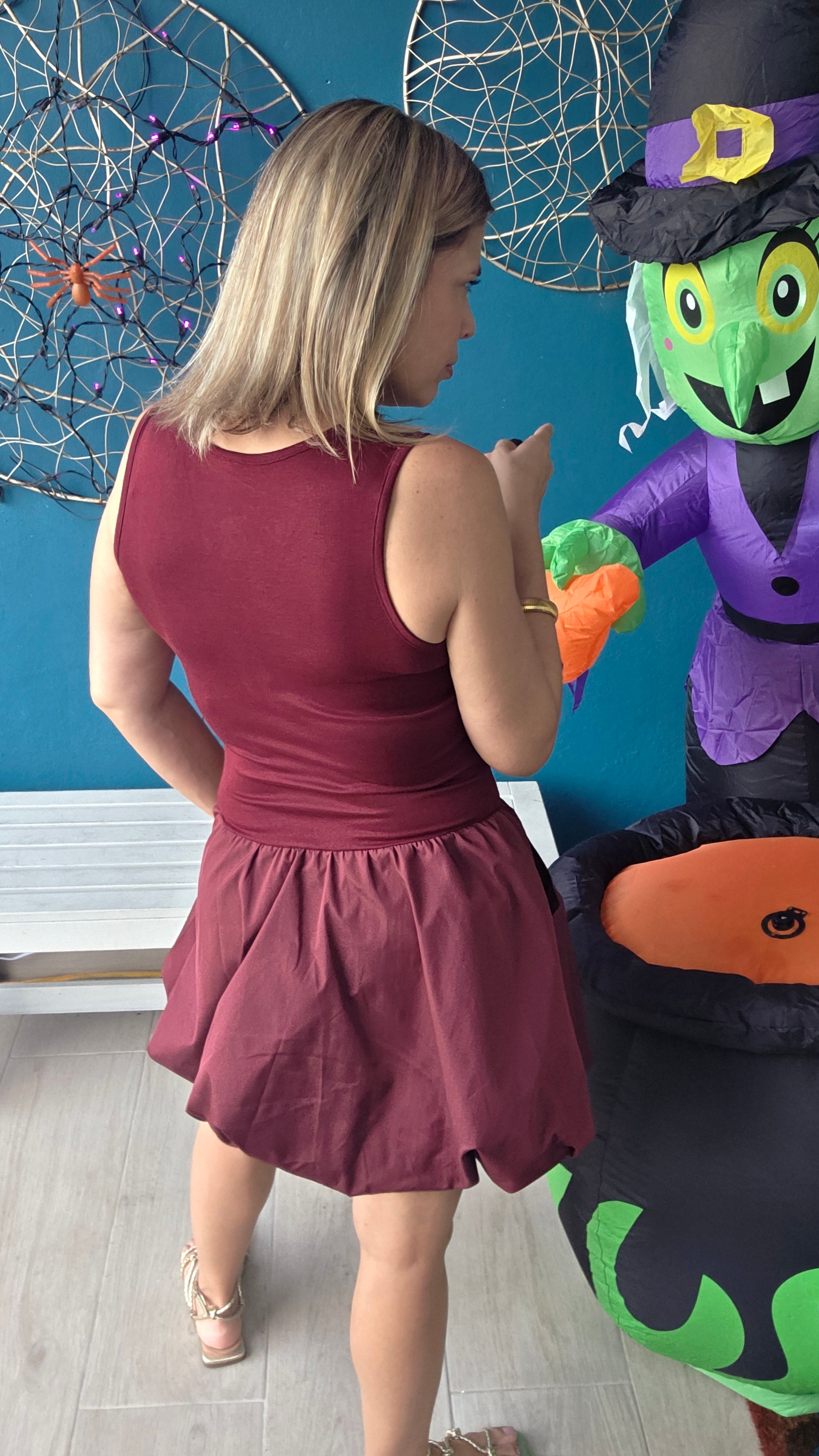 The Katiria Bubble Dress elegantly combines a fitted jersey knit top with a structured woven bubble skirt, creating a striking two-tone silhouette. Its sleeveless design and hidden pockets offer effortless style and practicality. Crafted from soft rayon-spandex knit and sustainable Tencel fabric, this mini dress is perfect for cocktail parties, date nights, or celebratory brunches, embodying both sophistication and comfort.