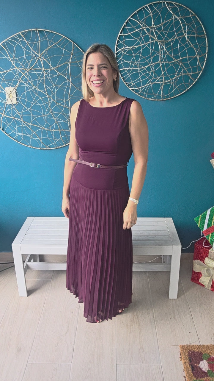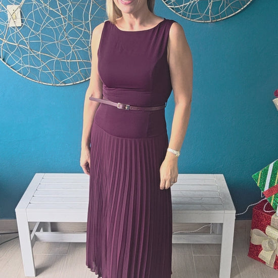 Effortless elegance meets fun in this sleeveless pleated midi dress! The fitted bodice flows into an accordion-pleated chiffon skirt that moves beautifully with every step, while an adjustable waist belt cinches your silhouette for a polished finish. Perfect for weddings, holiday parties, or any occasion calling for sophisticated style, this dress transitions seamlessly from day to night. The round neckline and graceful drape make it a timeless piece that feels both refined and playfully chic.